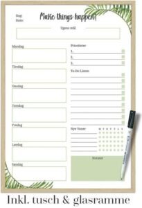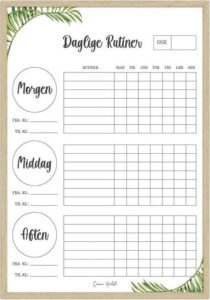 Vi har alle sammen forskellige mål og behov. Mens nogle har brug for en madplan tavle, har andre brug for at følge op på deres rutiner i løbet af ugen. Faktisk, så har vi med vilje givet vores rutine tavle samme design som ugeplanen – For mens at ugeplanen giver dig overblikket på ugens syv dage samt vaner og prioriteringer, så giver rutine tavlen dig mulighed for, at holde styr på de forskellige rutiner du/I har i løbet af dagen. Du bliver SIMPELTHEN nødt til at ha’ rutine tavlen med – Sammen fuldender de dit liv ? Se dem ved at klikke her!