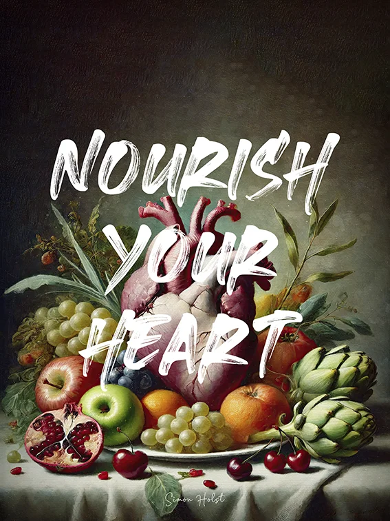 Med “Nourish Your Heart”-plakaten får du et smukt kunstværk, der kombinerer sundhed, inspiration og æstetik. Designet med et realistisk hjerte omgivet af friske frugter og grøntsager formidler plakaten et stærkt budskab om at tage hånd om både krop og sjæl.